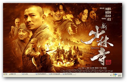 新少林寺电脑主题,展现了风格大气磅礴尽显少林风范的英雄气概.这部影片讲述了军阀混战年代英雄救国救民的故事