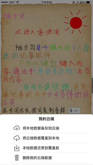 - 设定云同步,保护您的重要笔记。遇到手机损坏或其他状况时,可復原到之前的数据。