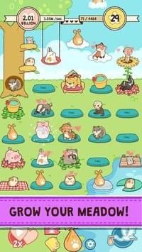 Merge Meadow手游是一个休闲培育的游戏,游戏以建设经营和动物合成为主要玩法,画面清新可爱,通过将不同的动物融合发现新的物种,收集动物的爱心和金币来改造我们的草地家园。