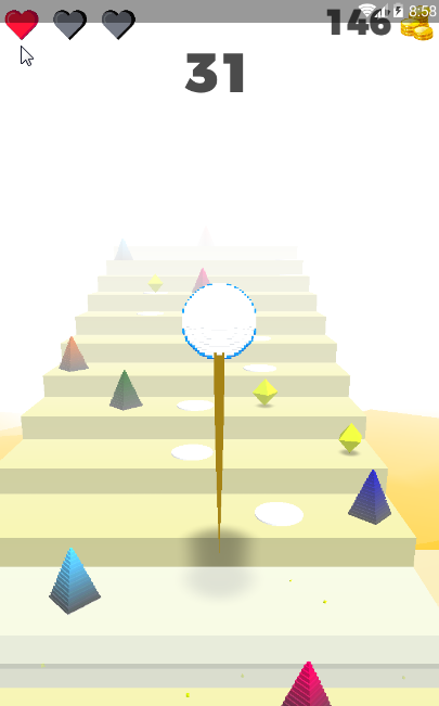 《楼梯跳跳跳》清晰明亮的游戏画面设计,良好的界面体验,玩家需要让一个小球在充满一些障碍物的各种台阶上冒险前进,需要克服前进路途中的种种挑战,不断的冒险跳跃,然后通过收集更多数量的金币,来获得较高的分数,精彩跳跃内容,值得体验。