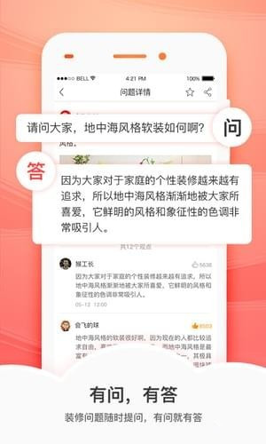 用户可以浏览装修攻略,学习各阶段装修知识,对装修问题进行提问和探讨。