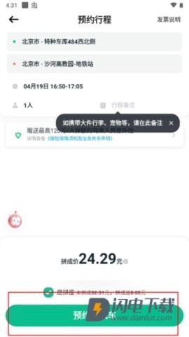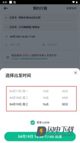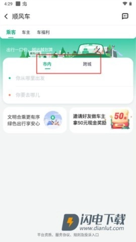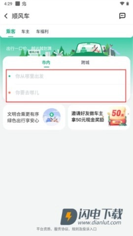 2. 挑选市内或跨城顺风车时,需选择出发地与目的地。