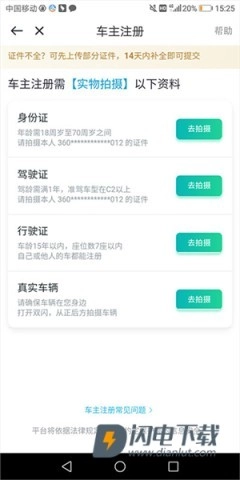 4、按照提示上传机动车驾驶证、身份证等相关照片,同时拍摄车辆照片,完成后提交审核。
