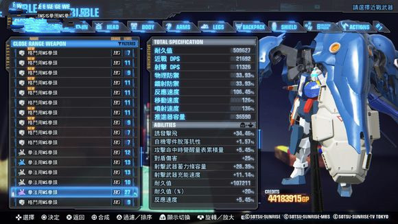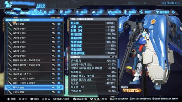 装甲(ARMOR):即HP,归零之后机体陷入战斗不能状态。