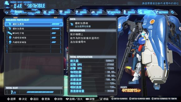 “Builder Part”系统:可以在自定义机体的基础上再度增加额外的武器部件,每台机体最多可外挂七 个“Builder Part”。