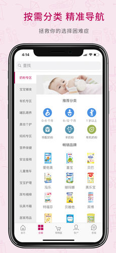 根据孕产育养各阶段的用户需要进行商品归类,借助优化界面可以精准找到自己需要的商品。