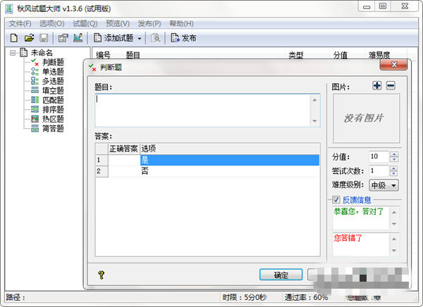 添加试题:1.菜单项中,点击[试题],选择对应的题打开添加试题窗口;