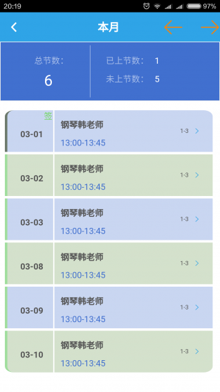 致力于提高学生成绩,帮助学生快速掌握乐器技能并实现个性化学习,学生可以通过本软件接收并完成老师教给的课后作业,在线请假、在线考勤;家长可以实时查看课费、课时、缴费情况等,及时了解孩子学习情况。