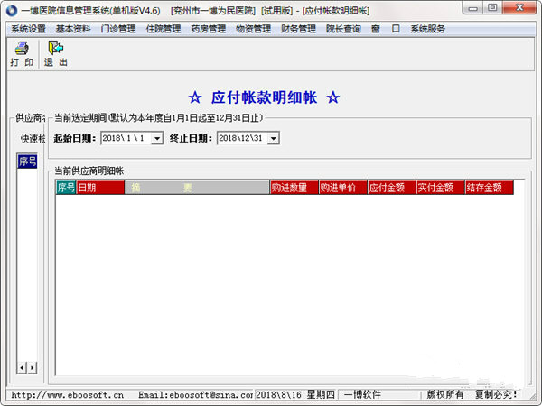 17、提供应收帐款、应付帐款报表,方便与病人、供应商之间的结算;