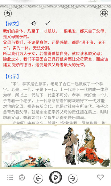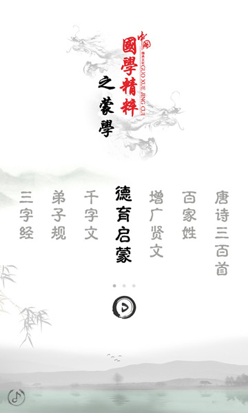 7、背景音乐为国学古典音乐,贴切主题,听国学时感觉美妙无比。