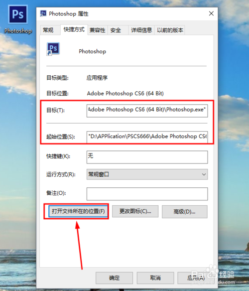打开ps6的安装目录路径 如果不知道可以单击桌面的快捷键--》属性 --》打开文件位置即可