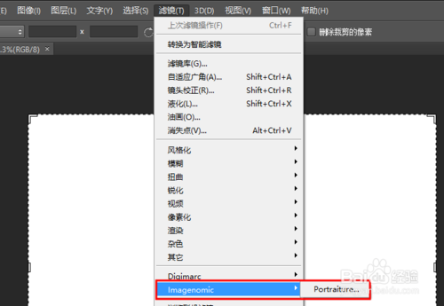 在滤镜下拉窗口中就可以看到Portraiture滤镜了。