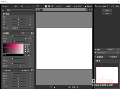 在磨皮层上使用专业磨皮滤镜Portraiture磨皮。这个滤镜的特点是磨皮只对皮肤区域起作用,而不会影响到其它区域。