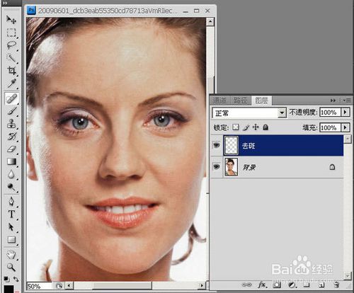 返回PS继续修整。新建一空白去斑层,用污点修复画笔去掉大的斑点。