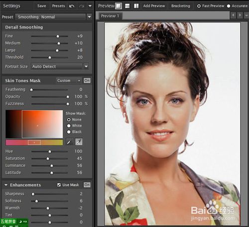 为了更精细的控制,您可以指定不同细节尺寸的平滑度,并调整锐度,柔软度,冷暖度,亮度和对比度。