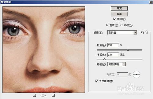 拼合图像,使用滤镜-锐化-智能锐化,进一步提高皮肤质感。