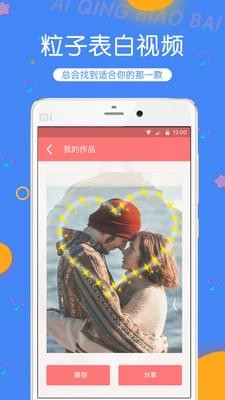 6.保存和分享视频:支持保存和分享炫彩粒子表白视频。