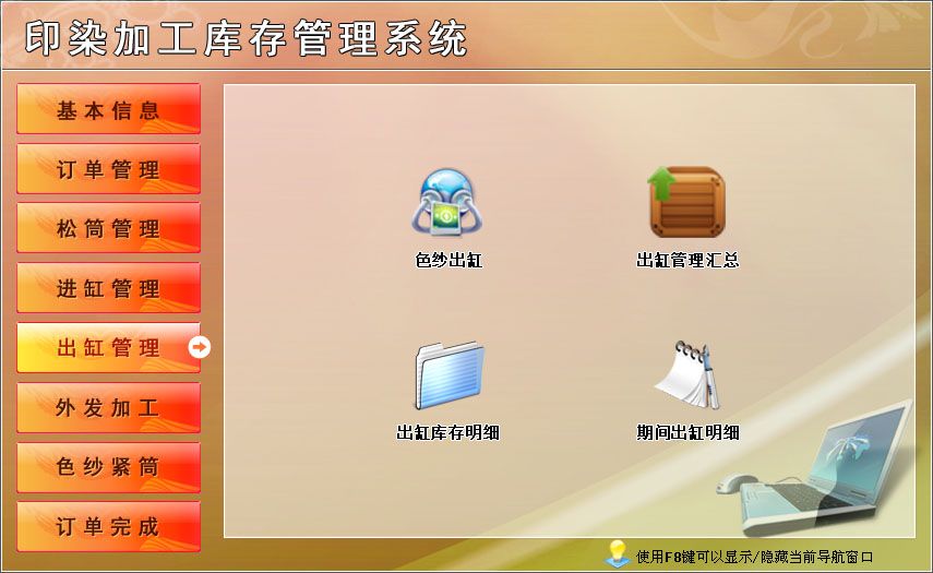 五、出缸管理:色纱出缸、出缸管理汇总、出缸库存明细、期间出缸明细