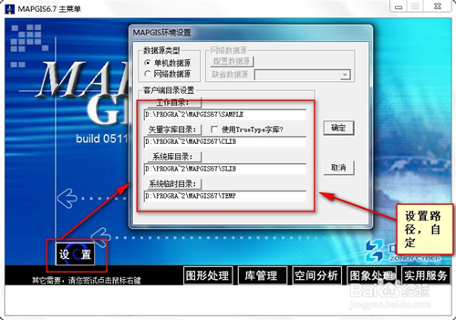 软件就成功安装完成了,现在打开mapgis,打开主窗口。点击【设置】,修改存储路径,也可以使用默认,如图