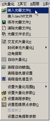 新建工程后,单击”矢量化“菜单下的”装入光栅文件“命令,装入待矢量化的光栅文件,如下图所示: