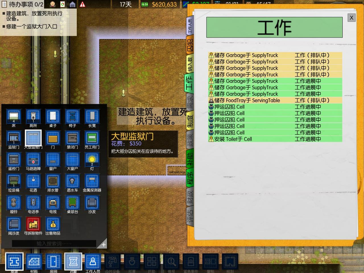 Deliveries:注意这个最好不要换地方如果不在马路边会导致运送来的东西和囚犯到不了