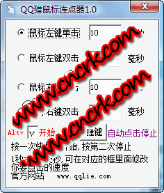 QQ猎鼠标连点器 V2.2 绿色免费版 QQ猎鼠标连点器是一款小巧实用的鼠标连点器软件,支持鼠标左键、右键的无限单击和双击,只需简单设置即可解放双手。QQ猎鼠标连点器官方版纯绿色,无需安装,完全免费!
