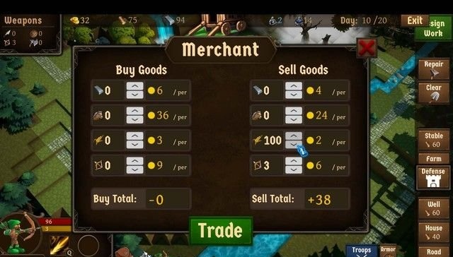 会有商人随机地进入村庄,和你进行交易,交易可以说是最主要的金币来源,