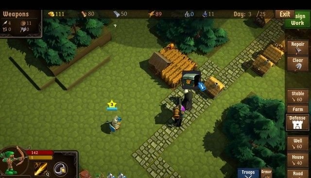 2,木头:通过分配工作获得,主要用来打造武器和建造房屋。