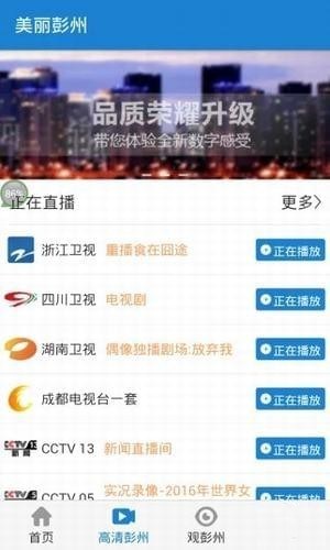 美丽彭州app做服务彭州的全方位融合平台,美丽彭州app集社交,互动,资讯、服务于一体的移动互联网互动平台,包含新闻服务、便民生活、彭州美食旅游、智慧社区、高清直播(电视直播和节目单)、城市VR、景区监控等!