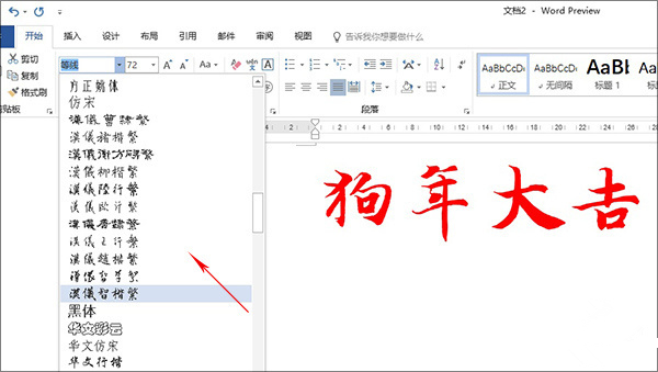 之前小编一直很羡慕WPS的云字体功能,尤其在进行一些排版类工作时,这一特性真的非常非常实用。在Office 2019中,我发现微软又新增加了几款内置字体。这些字体全部属于汉仪字库,都是一些书法感很强的字体风格。狗年到了!用Word写个对联,你会发现比以前方便多了。
