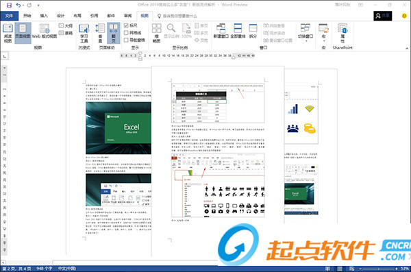 类似于之前的“阅读视图”,Office 2019此次新增加了一项“横版”翻页模式。勾选“翻页”按钮后,Word页面会自动变成类似于图书一样的左右式翻页。这显然是为提高平板用户体验,做出的一次改进。