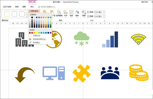 制作PPT时我们常会使用一些图标,大多数图标结构简单、传达力强,却并不好找。最新版Office 2019则增加了在线图标插入功能,让我们可以像插入图片一样一键插入图标。从试用情况看,Office 2019的在线图标库还是蛮丰富的,分为“人物“、”技术与电子“、”通讯“、“商业”、“分析”、“商贸”、“教育”……等数十组门类。最关键的是,所有的图标都可以借助PowerPoint填色功能直接换色,甚至拆分后分项填色!