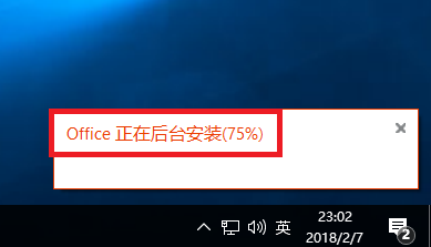 5、此时Office2019就会开始安装,出现了两次红色的安装界面,然后什么都没有了,以为出错了,但是实际上没有。点开右下角的小箭头,可以看到两个office图标,双击第二个,可以看到office正在后台,安装,我们耐心等待安装完毕。