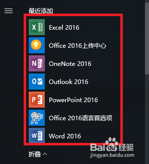 6、安装完毕后也没有任何提示,但是那个office图标会消失。然后我们点开开始菜单,可以在左边的菜单栏里看到已经安装好的office2016,我们随便点开一个。启动速度非常快,进入到word界面后,就能看到office2019 preview了。