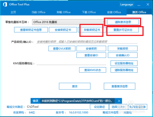 8、在实体机上安装,需要清除原来的office2016或office2013的激活信息。可以通过刚才那个Office Tool Plus工具来清除,但是清除之前请备份你的激活信息,激活信息保存在C:\Windows\System32\spp\store目录底下,把这个目录整个备份。然后使用刚才那个工具的最后一个选项卡,清除所有的激活信息。