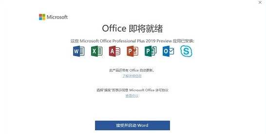 请注意,如果您正在使用Windows 10预览版则不要安装Office 2019,安装后会提示未授权因而无法激活的。