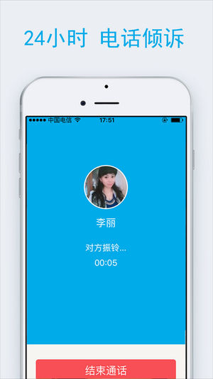 4、 内置网络电话,24小时呼通心理专家。