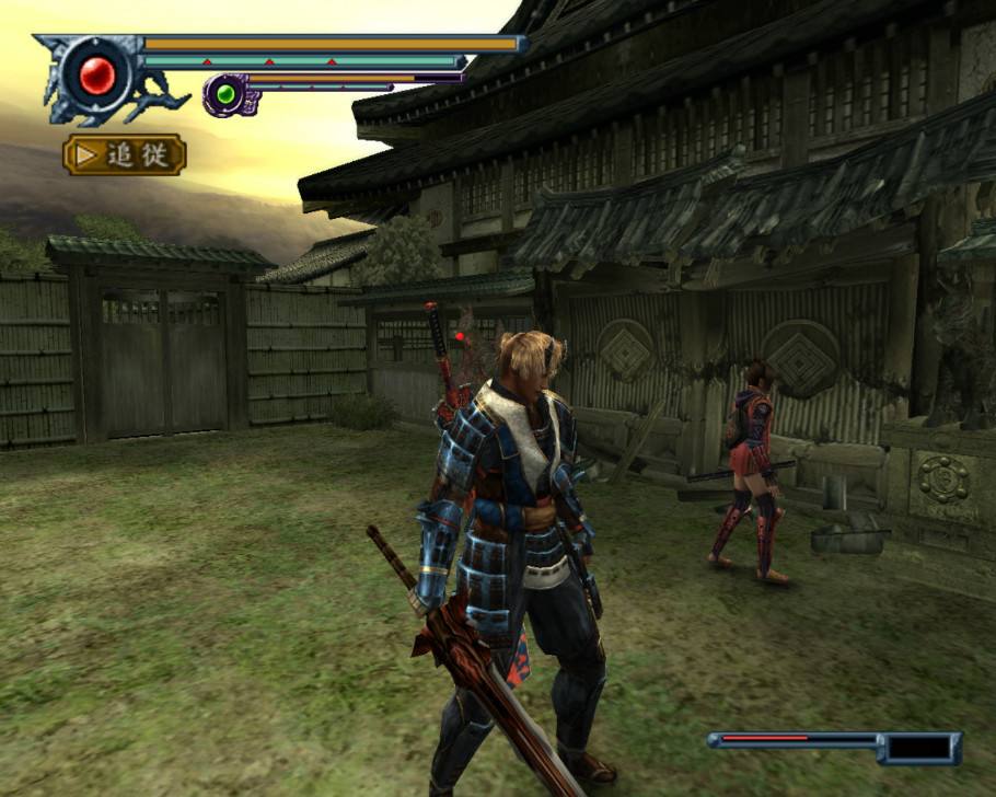 沿途进入门,屋子中有存盘点,可以强化,一路上记得打碎罐子搜刮些物品,路边的摊位上有鬼药,进入场景另一边的,这里有不少敌人,可以用来赚魂,一直走到尽头,上二层拿到防具[足轻の喉当],最下边拿到武器[焰舞],通过两个屋子中间的门,解决两个弓箭手后进入对面的门,战斗结束后在地上拿到[原宿地图],调查旁边的木板,小LOLI十兵卫登场,与其战斗,注意他的速度很快,一直贴身砍就好,很简单就能赢,之后就能与其配合战斗了。