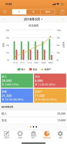 类别占比,成员占比,收支趋势等图表功能,把您的收支状况呈现得明明白白,清清楚楚。