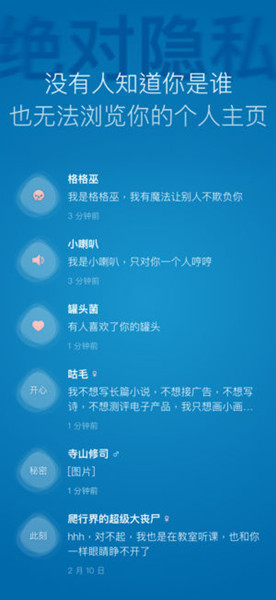 为社交恐惧症定制,远离人群,也渴望被倾听没有人知道你是谁,也无法浏览你的个人主页