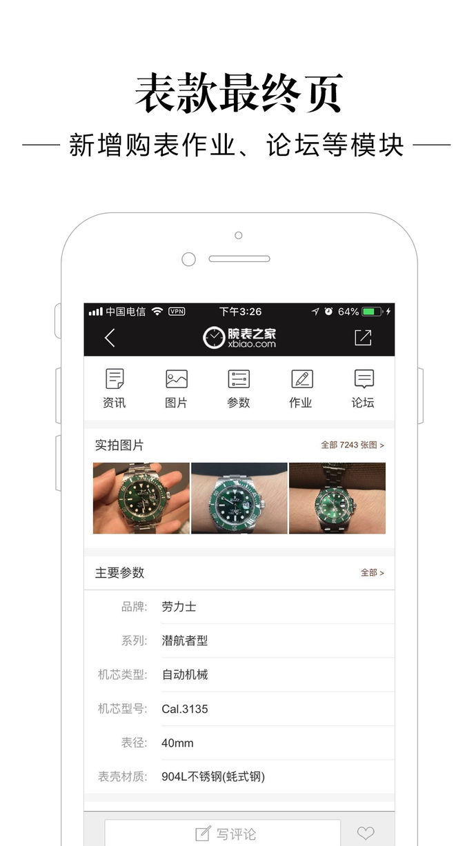 同时,腕表之家致力打造中国专业的腕表交流平台。用户可以针对腕表之家收录的每一款腕表和发布的信息提出自己的看法和需要,传递腕表爱好者和需求者直接的心声。满足表迷们“看表”、“爱表”、“选表”、“买表”、“晒表”的全程需求。
