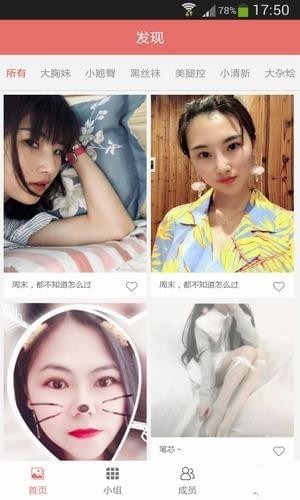 -在这里拥有丰富的分类,用户点击大胸妹、小翘臀、黑丝袜、美腿控、有颜值、大杂烩等分类进行选择