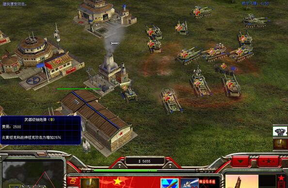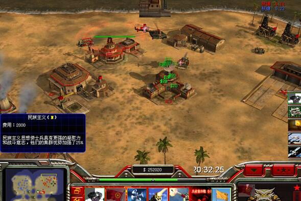 主要攻略:开始美军与GLA搏击,一定要灭了那部生化死雨车,小心从两边而来的恐慌分子。之后与中国军队一直杀到河边,小心效区的房屋里的反抗兵,用汗马来回攻击,也是用诱敌战术,这样可以好打些。到了河边有两部自爆的小车,装甲较弱。过河后,会有排成一行的成十部T72,但我们也有98,用98与M1A2配合去打T72!!也是要小心路上的房屋,会有很多反抗军出来!!在攻击山上时,用美国与中国的防空车一起合作,因为全部都是兵。灭了山上的敌人之后就建基地,造FBC轰炸机(好像是这样说的)灭了全部碉堡,过关!!不用灭GLA军队!如果你想全灭GLA军,记得不要先全灭碉堡,否则就NO TIME了!!向下攻,用火龙坦克灭了屋里的兵,再配合防空车,将右边中间的素刺,到下面有一个遗留下来的兵厂和车厂,还有补给站,开始多做火箭兵,小心地上在很多隐形炸弹,在没有一定攻防能力前不会主动攻击GLA基地。用FBC先灭碉堡(好像也是这样叫的?)里的敌人,再攻击!!