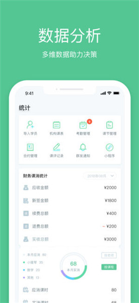 学员管理:快速添加学员,实时了解学员所在班级;班级管理:自定义创建,随时管理班级;