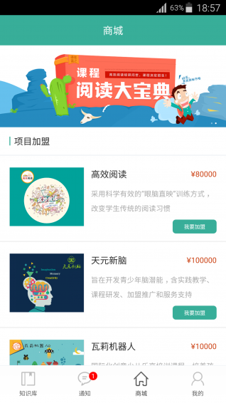 您可以在商城加盟天地人和教育产品、购买教材、缴纳场地费;