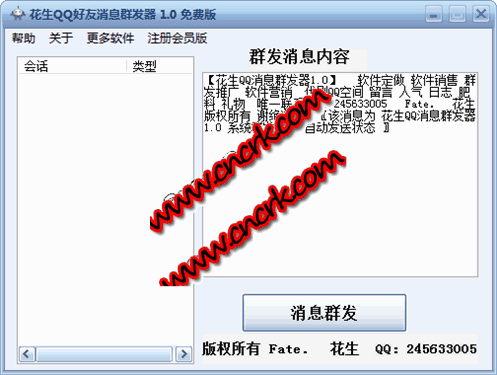花生QQ消息群发王 V1.0 简体中文绿色免费版 花生qq消息群发器 是一款能自动发送 支持1千以上qq消息群发