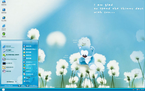醉在春风里主题梦幻的蓝色桌面壁纸中,一束束白色小花在煦暖的阳光下显得格外漂亮,那微微拂动的风让人有一种昏昏欲醉的感觉,实在是惬意。