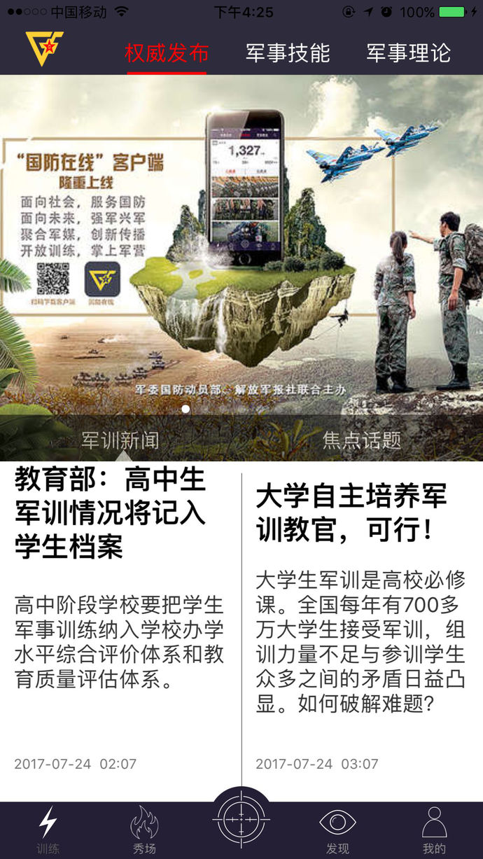 ——发布军训权威信息,解放军唯一军训平台——移动军事技能训练,部队精英给你当教练