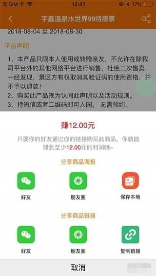 爱买店主分享产品海报之后,有好友在海报购票可直接立刻收到佣金奖励。店主不需要洽谈景区,也不需要去管游客购买后的流程,只要做好自己的社交流量,就可以轻松赚钱。