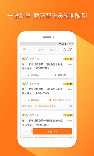 Q:商家如何发布订单?点我达APP支持商家一键发单,仅需一步操作就可以发布订单。